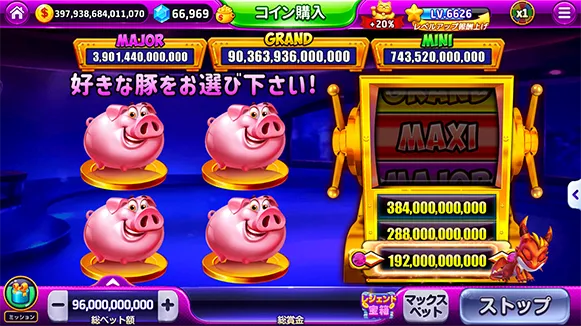 ビンゴとビンゴとスロットが見事に融合した、1+1>2の楽しさを味わえる無料スロットです!かわいいブタさんがたくさんのコインを抱えて、一緒にゲームの世界へ誘ってくれます。たくさんの報酬と無料コインに興奮していますか?それなら、今すぐスピンしましょう!が見事に融合した、1+1>2の楽しさを味わえる無料スロットです!かわいいブタさんがたくさんのコインを抱えて、一緒にゲームの世界へ誘ってくれます。たくさんの報酬と無料コインに興奮していますか?それなら、今すぐスピンしましょう!